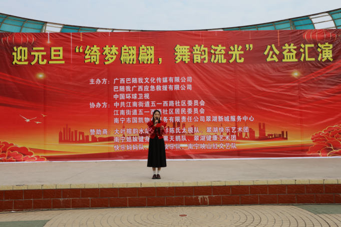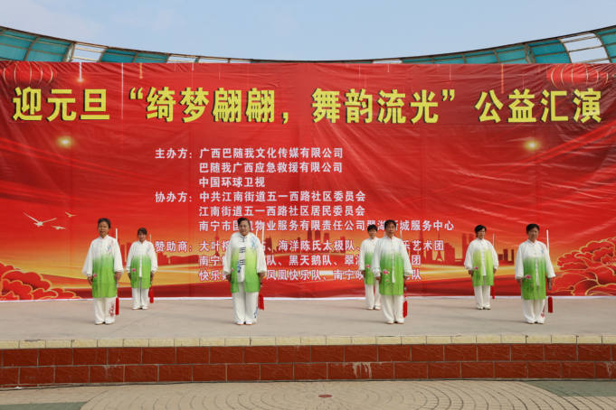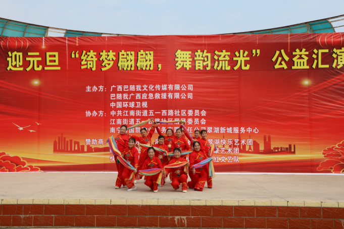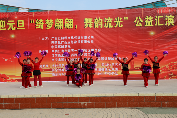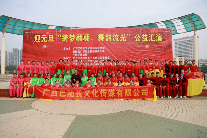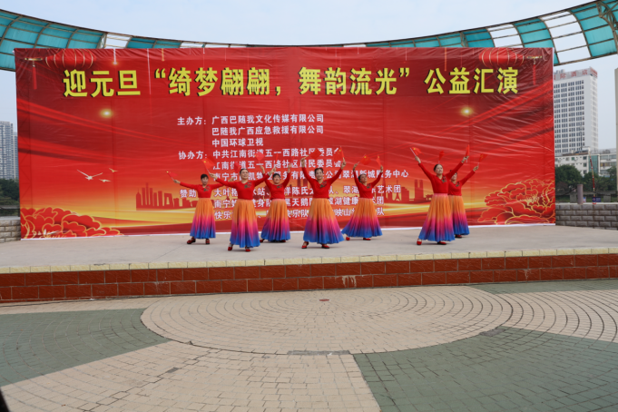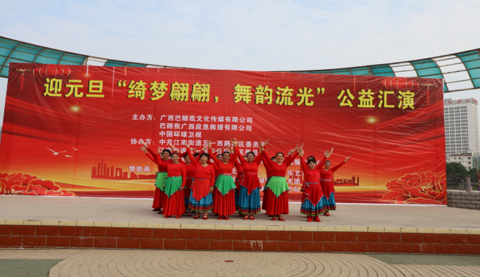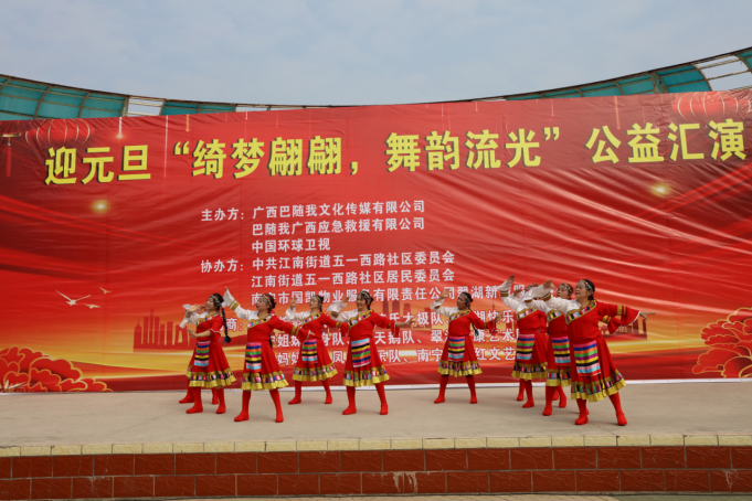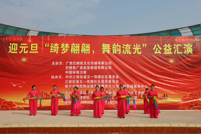 冬日暖阳,温情相聚。2025年12月30日上午9点,一场以“绮梦翩翩,舞韵流光”为主题的迎元旦公益汇演,在翠湖广场如期举行,在众人的期盼中拉开帷幕。来自各文艺团体的退休女性表演者们,怀揣着对生活的热爱与对新年的憧憬,用最真挚的演绎,为现场观众带来了一场视听盛宴。本次汇演由广西巴随我文化传媒有限公司、巴随我广西应急救援有限公司、中国环球卫视联合主办,中共江南街道五一西路社区委员会、江南街道五一西路社区居民委员会、南宁市国凯物业服务有限责任公司翠湖新城服务中心协办,得到了大叶榕韵水站、海洋陈氏太极队、翠湖快乐艺术团等多家单位的大力支持,让这场公益之约得以圆满呈现。